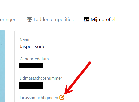 - Klik op het kleine potloodje naast "Incassomachtigingen"